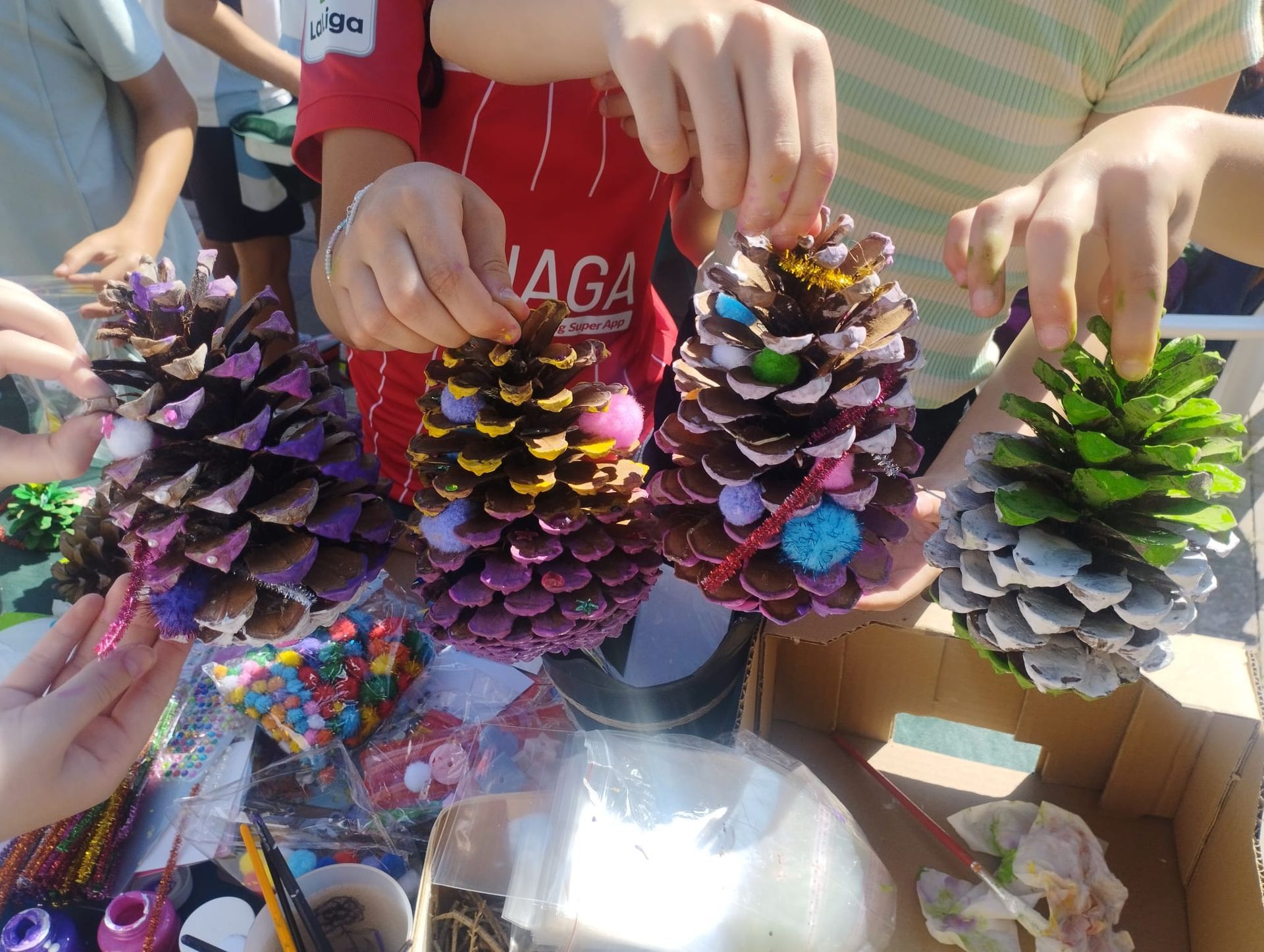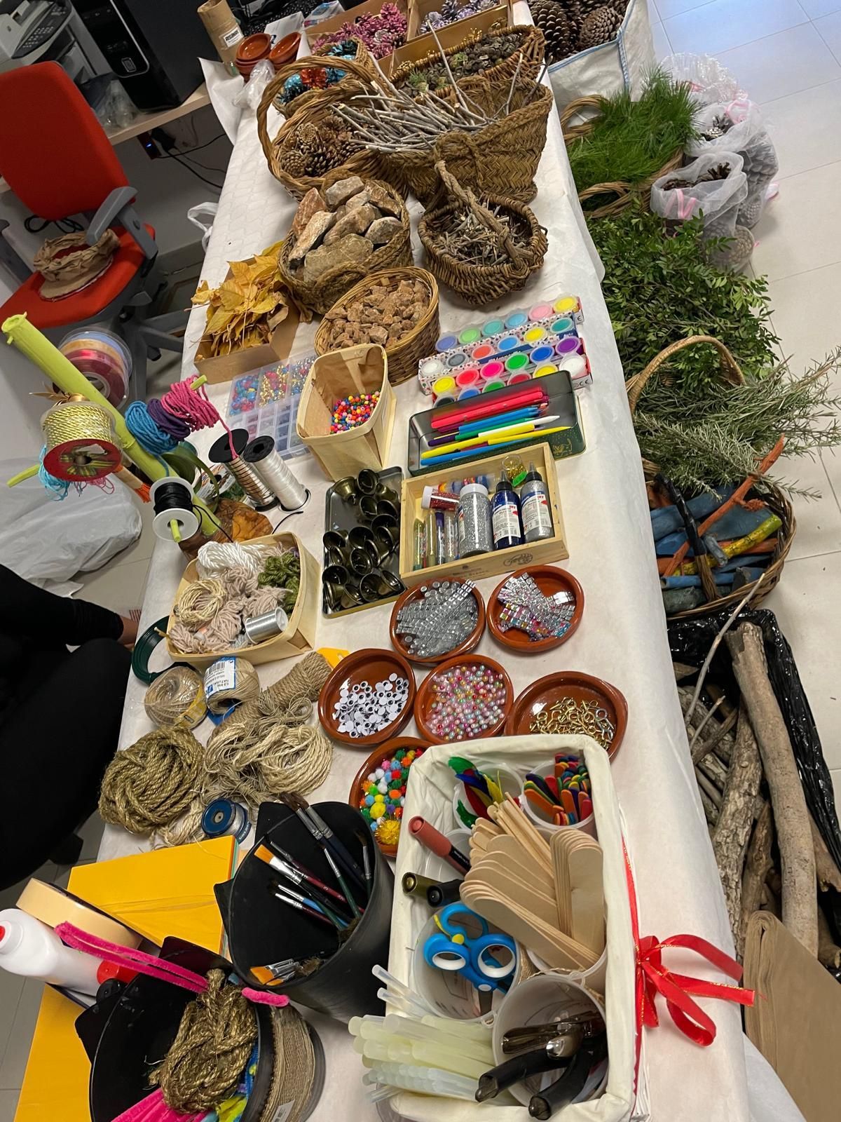 Todo tipo de elementos para la decoración: pinturas, pinceles, adornos, cintas, cuerdas…