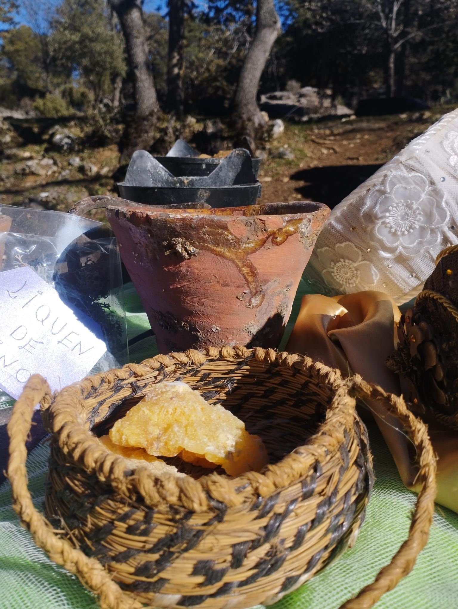 Todo tipo de residuos y recursos forestales: piñas de pino, maderas, palos, piedras, hojas…
